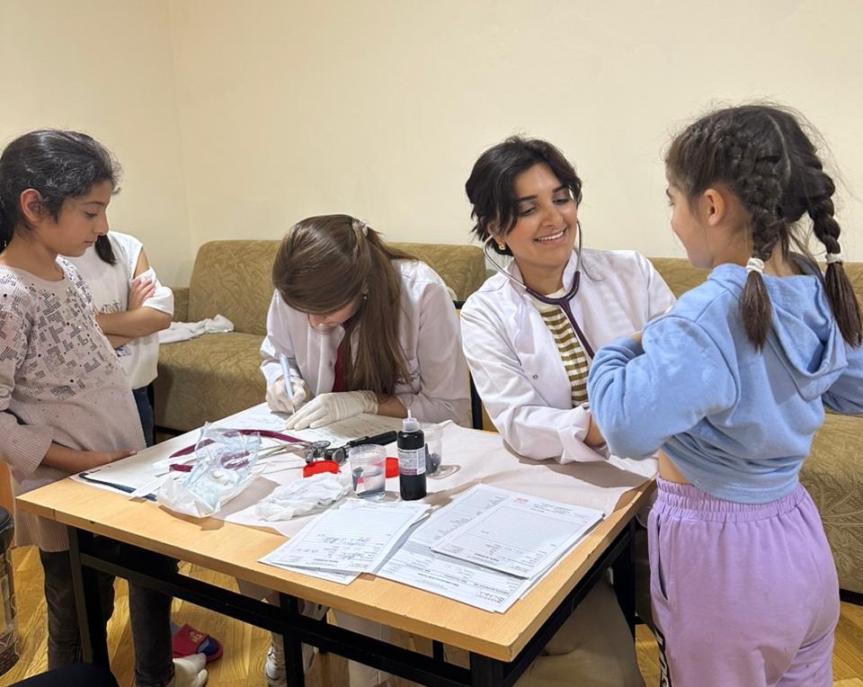 Bu dəfə Cəmiyyətin üzvü olan bir qrup həkim və tibb bacısı tərəfindən Əmək və Əhalinin Sosial Müdafiəsi Nazirliyinin tabeliyində Sosial Xidmət Agentliyinin 2 saylı Uşaq evi sosial xidmət müəssisəsində məskunlaşmış uşaqlar pediatr, kardioloq, kardiocərrah və oftalmoloq tərəfindən müayinə edilib. Müayinədən sonra müalicə kursu təyin olunub.
